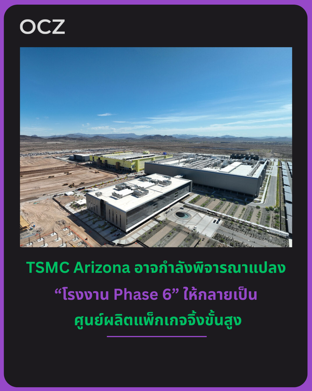 เมื่อวานนี้ สื่อไต้หวัน รายงานการเปลี่ยนแปลงครั้งใหญ่ที่กำลังจะเกิดขึ้นในพื้นที่ของ TSMC Arizona: ผู้บริหารมีแผน แปลงพื้นที่ที่เดิมจะสร้างโรงงานผลิตเวเฟอร์ Phase 6 (P6 Fab) ให้กลายเป็น โรงงาน Advanced Packaging (AP) แทน หากการก่อสร้างเป็นไปตามแผน คาดว่าจะเริ่มติดตั้งอุปกรณ์ได้เร็วสุด ปลายปี 2027 และเข้าสู่ช่วง ก่อนการผลิต (pre-production) ได้ในเวลาต่อมา