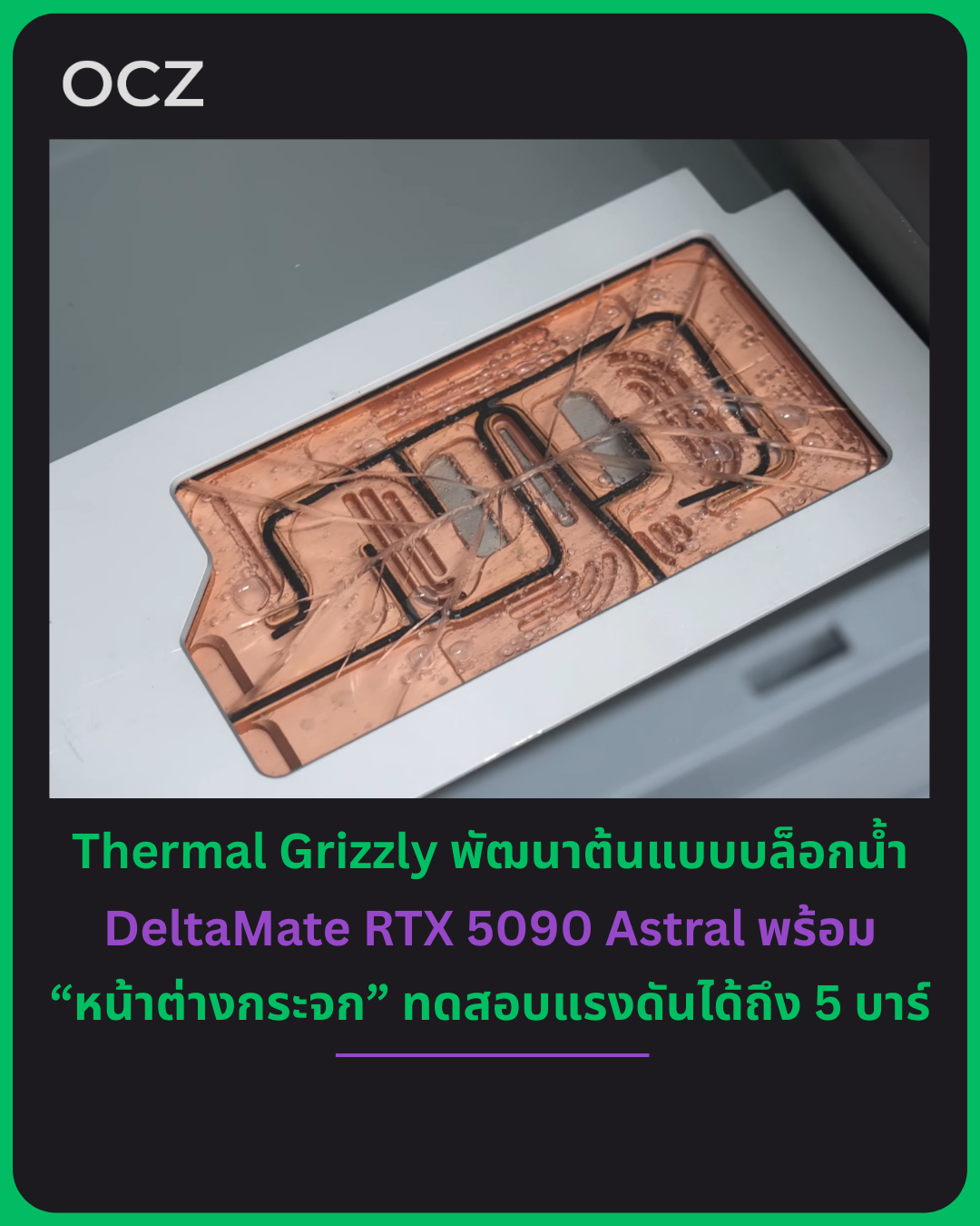 Thermal Grizzly ระบุว่ายังคงอยู่ระหว่างการพัฒนาบล็อกน้ำ DeltaMate เวอร์ชัน “หน้าต่างกระจก” สำหรับการ์ดจอ ASUS ROG GeForce RTX 5090 Astral หลังจากที่รุ่นแรกที่วางจำหน่ายไปแล้วใช้หน้าต่างอะคริลิก (PMMA) โดยเป้าหมายหลักคือการหาวัสดุที่ ทนรอยขีดข่วนมากกว่า และเสื่อมสภาพจากการใช้งานระยะยาวน้อยกว่าอะคริลิก