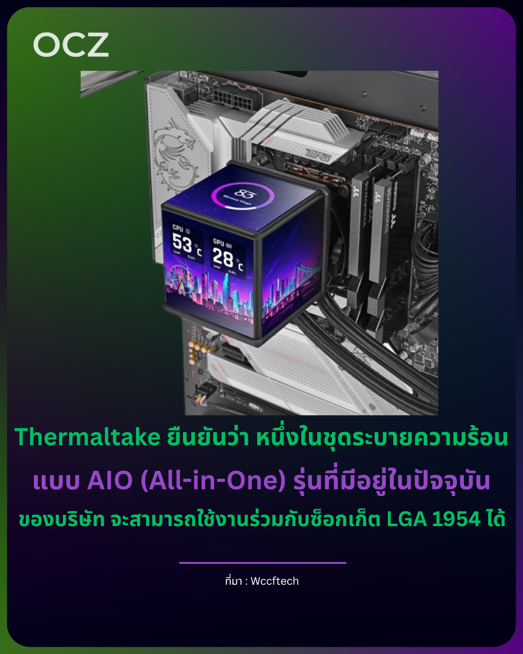 ผู้ผลิตเคสและชุดระบายความร้อนชื่อดัง Thermaltake ได้ออกมายืนยันอย่างเป็นทางการว่า ซ็อกเก็ต Intel LGA 1954 จะเป็นหนึ่งในแพลตฟอร์มที่รองรับโดยชุดน้ำ MINECUBE 360 Ultra ARGB Sync ซึ่งเป็นรุ่นใหม่ที่เคยถูกนำมาโชว์ในงาน Computex ปีนี้ รายชื่อความเข้ากันได้ของผลิตภัณฑ์ระบุชัดว่า นอกจากจะรองรับ LGA 1851 แล้ว ยังสามารถใช้งานกับซีพียู Intel Nova Lake ที่จะเปิดตัวในอนาคตได้ด้วย