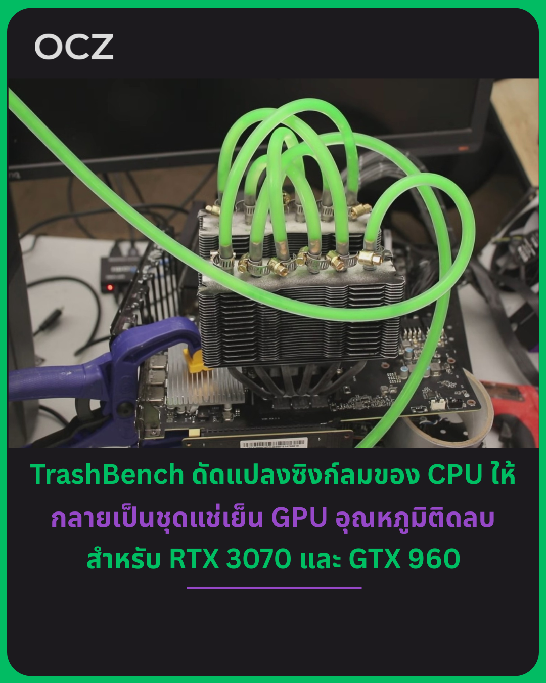 TrashBench กลับมาอีกครั้งพร้อมการทดลองระบายความร้อน GPU แบบ “เสี่ยงแต่ดูสนุก” อีกรอบ โดยครั้งนี้เขาไม่ได้เล่นแบบแช่การ์ดจอทั้งใบเหมือนก่อนหน้า แต่หันมาใช้วิธีเจาะจงกับ RTX 3070 และ GTX 960 แทน เป้าหมายมีอย่างเดียว:
