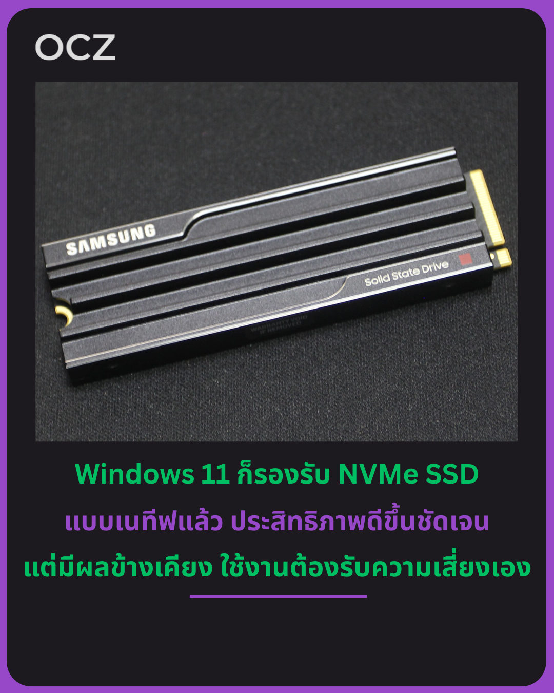 สื่อต่างประเทศรายงานว่า เมื่อไม่นานมานี้ Microsoft ได้ประกาศเพิ่ม การรองรับ NVMe SSD แบบเนทีฟ (Native) ให้กับ Windows ซึ่งเป็นการก้าวข้ามข้อจำกัดของการจำลองผ่าน SCSI อย่างที่ใช้มาโดยตลอด ส่งผลให้ทั้งอัตราการรับส่งข้อมูลและประสิทธิภาพการใช้ CPU ดีขึ้นอย่างชัดเจน ผู้ใช้ที่ติดตั้ง อัปเดตสะสมเดือนตุลาคม 2025 สามารถเปิดใช้งานฟีเจอร์นี้ได้ด้วยการแก้ไข Registry
