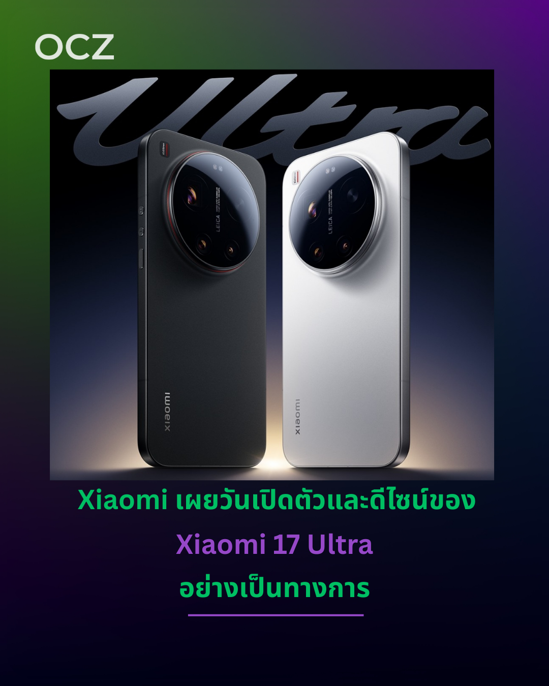 Xiaomi ยืนยันผ่านโพสต์บน Weibo ว่า Xiaomi 17 Ultra จะเปิดตัวในจีนวันที่ 25 ธันวาคม พร้อมกันนี้ยังเผยให้เห็นดีไซน์ด้านหลังและสีตัวเครื่องด้วย