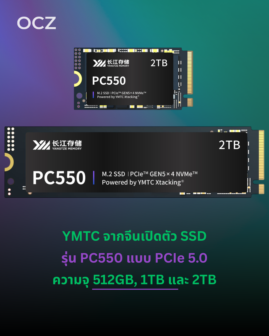 YMTC จากจีนเปิดตัว SSD รุ่น PC550 แบบ PCIe 5.0 ความจุ 512GB, 1TB และ 2TB