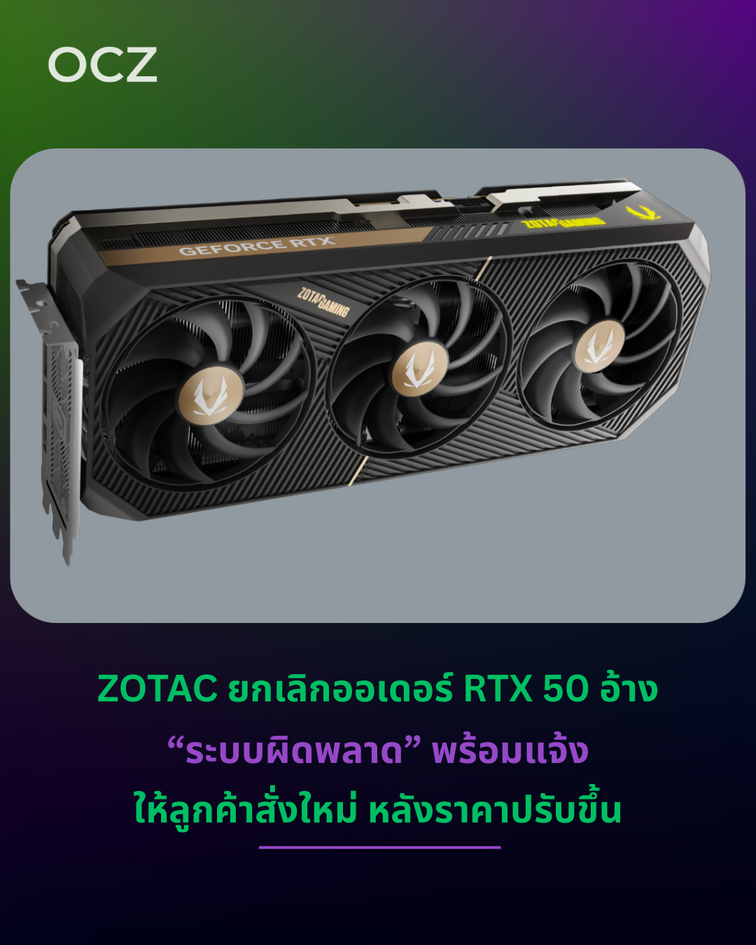 ผู้ซื้อหลายรายรายงานว่า ZOTAC Store ได้ทำการยกเลิกคำสั่งซื้อการ์ดจอ RTX 50-series ที่สั่งไปในช่วงที่มีของเข้าล็อตล่าสุด ก่อนจะนำการ์ดรุ่นเดิมกลับมาวางขายใหม่อีกครั้งในราคาแพงขึ้นไม่นานหลังจากนั้น โดยอีเมลยกเลิกคำสั่งซื้อระบุสาเหตุว่าเกิดจาก “system error” และต่อมาหน้าร้านค้าออนไลน์ก็ไม่สามารถเข้าใช้งานได้เป็นระยะหนึ่ง