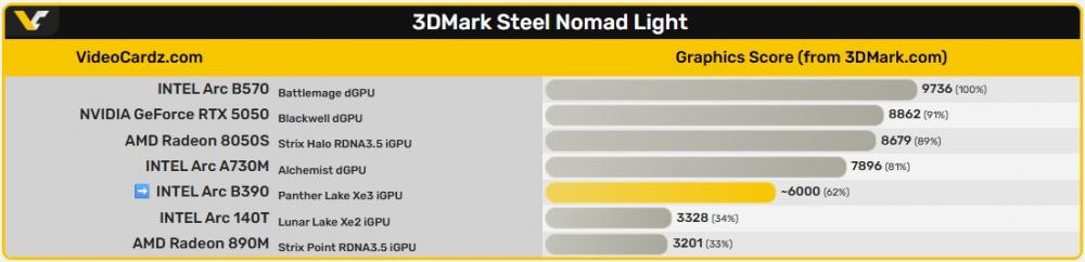 แม้ Time Spy จะไม่ใช่เบนช์มาร์กที่ดีที่สุดในยุคนี้ และมักเข้าข้างชิป Intel อยู่แล้ว จึงได้ขอคะแนนจากการทดสอบอื่นเพิ่ม และ Raichu ก็ยืนยันว่า Arc B390 ทำคะแนนใน Steel Nomad Light ได้ 6000+ คะแนน ซึ่งสูงกว่าเฉลี่ยของ 890M ถึง 87% และสูงกว่า Arc 140T ประมาณ 80%