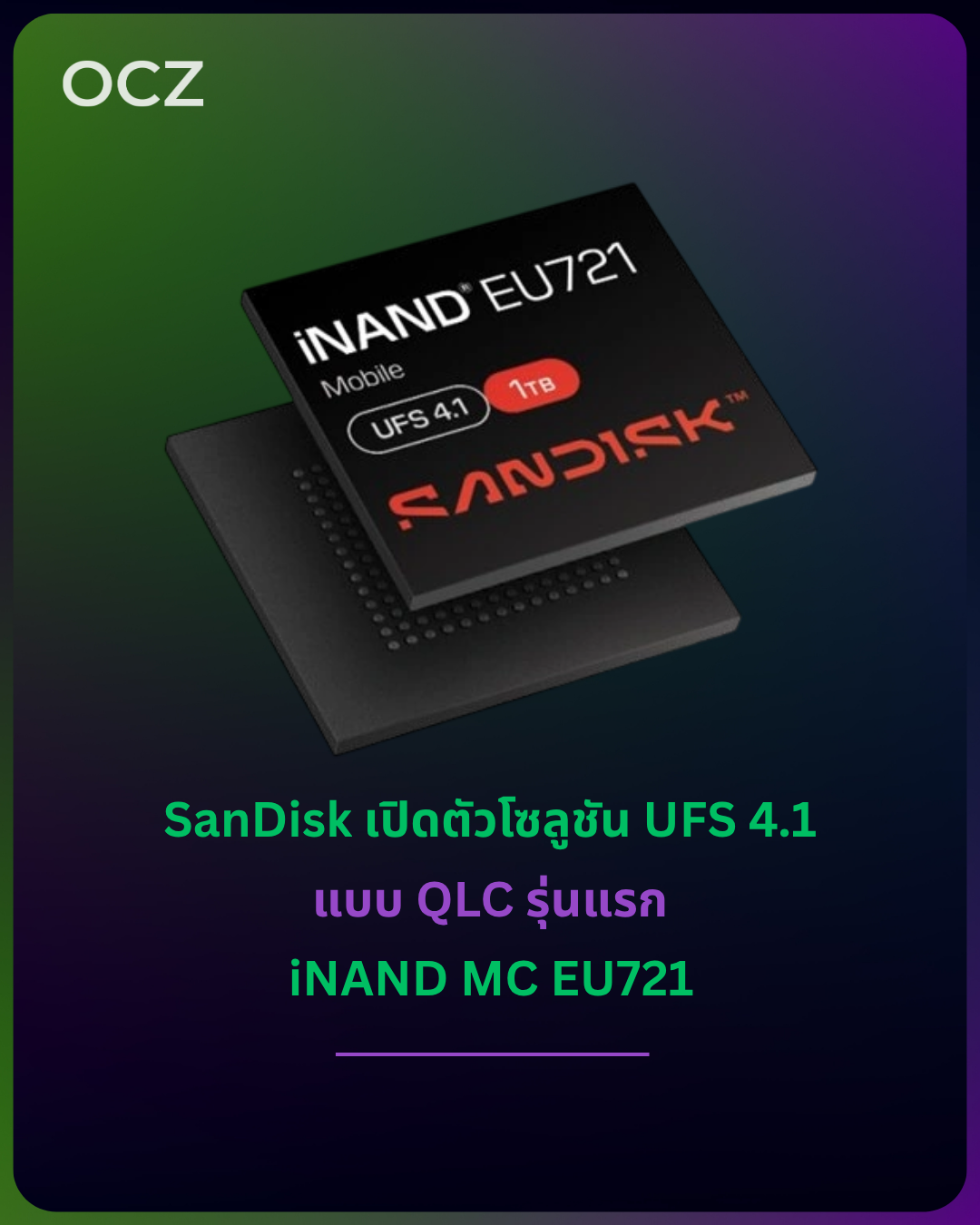 SanDisk ได้เปิดตัวหน่วยความจำแฟลชแบบฝัง (Embedded Flash) มาตรฐาน UFS 4.1 รุ่นแรกที่ใช้เทคโนโลยี QLC NAND ในชื่อ iNAND MC EU721 ภายในงาน CFMS | MemoryS 2026 โดยออกแบบมาสำหรับอุปกรณ์สมาร์ตโฟนตั้งแต่ระดับกลางจนถึงเรือธง