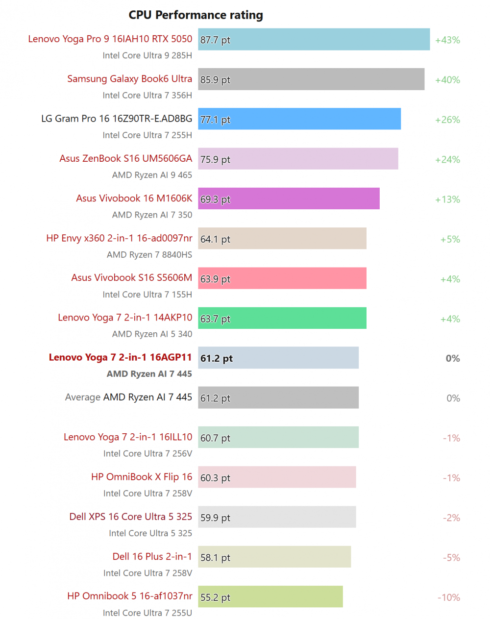 - Ryzen AI 7 445 ได้คะแนนรวม 61.2