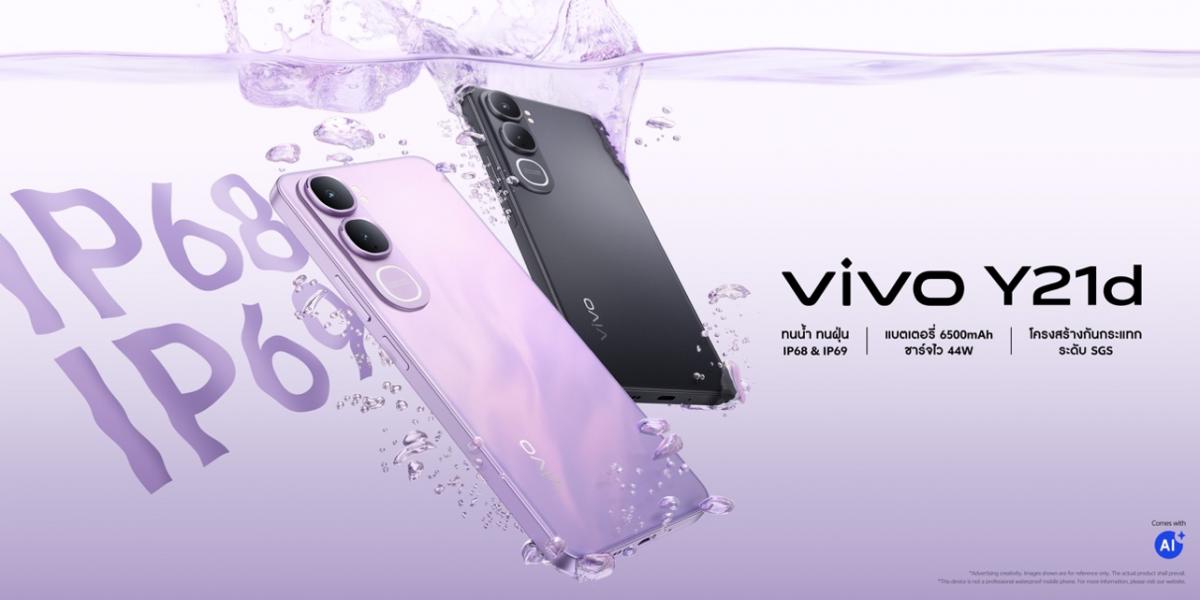 vivo แบรนด์สมาร์ตโฟนชั้นนำระดับโลก เอาใจผู้ใช้งานที่มองหาทั้งความทนทานและความคุ้มค่าด้วยการเปิดตัวสมาร์ตโฟนรุ่นใหม่ล่าสุด vivo Y21d ที่โดดเด่นด้วยสเปกเกินราคา โดยเป็นครั้งแรกของสมาร์ตโฟนตระกูล Y Series ที่มาพร้อมมาตรฐานทนน้ำทนฝุ่น IP68 & IP69 เสริมความแข็งแกร่งด้วยโครงสร้างกันกระแทกรอบด้าน มอบความมั่นใจในทุกการพกพา นอกจากนี้ยังเป็นสมาร์ตโฟน vivo รุ่นแรกในระดับราคาเดียวกันที่จัดเต็มแบตเตอรี่ BlueVolt ความจุสูงถึง 6500mAh เพื่อรองรับทุกการใช้งานในชีวิตประจำวันอย่างราบรื่น นำเสนอประสบการณ์ความบันเทิงเต็มอารมณ์ด้วยลำโพงสเตอริโอคู่เสียงดังทรงพลังที่สามารถบูสต์ได้สูงสุดถึง 400% ให้ผู้ใช้งานได้ดื่มด่ำกับการรับชมเอนเตอร์เทนเมนต์เต็มอิ่มทุกรายละเอียด พร้อมวางจำหน่ายในประเทศไทยแล้วตั้งแต่วันนี้ ในราคาเริ่มต้นเพียง 4,499 บาท