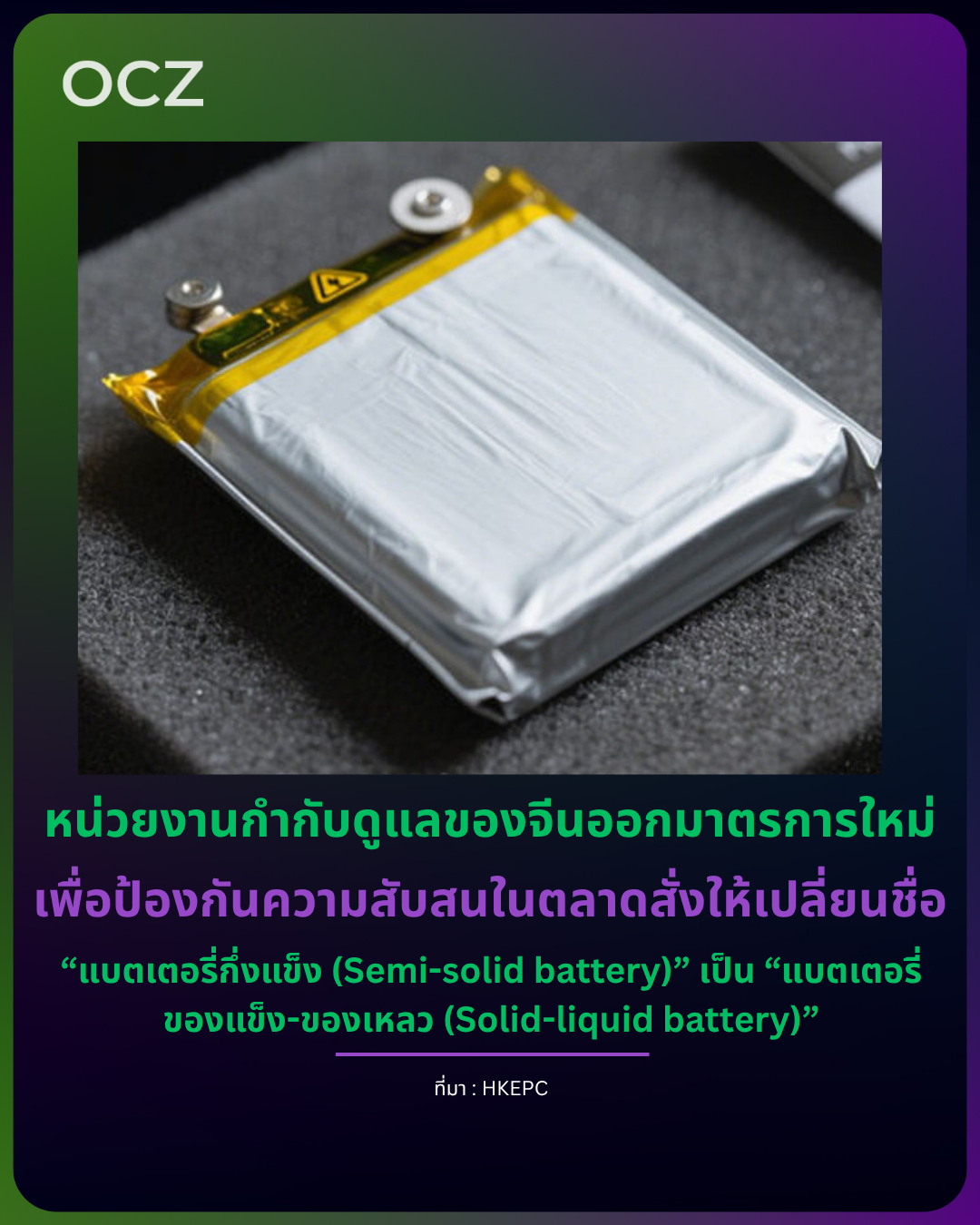 สื่อจีนรายงานว่า เพื่อหลีกเลี่ยงความสับสนระหว่าง “แบตเตอรี่กึ่งของแข็ง (Semi-solid battery)” และ “แบตเตอรี่ของแข็ง (Solid-state battery)” หน่วยงานกำกับดูแลของจีนเตรียมออกข้อกำหนดใหม่ โดยจะ เปลี่ยนชื่อ “แบตเตอรี่กึ่งของแข็ง” ให้ใช้ชื่อใหม่ว่า “แบตเตอรี่ของแข็ง–ของเหลว (Solid-liquid battery)” คาดว่าผู้ผลิตในจีนจะปรับการสื่อสารและใช้คำใหม่นี้ในไม่ช้า เพื่อให้ชัดเจนว่าถ้าเรียกว่า “แบตเตอรี่ของแข็ง” ต่อไป จะต้อง “ไม่มีอิเล็กโทรไลต์เหลว” อย่างแน่นอน — ไม่ใช่ครึ่งแข็งครึ่งเหลวเหมือนก่อนอีกต่อไป